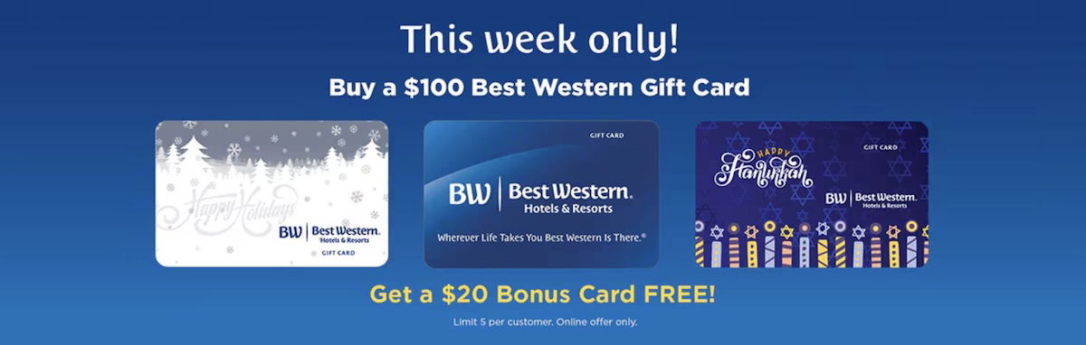 - Each person can purchase up to five Best Western gift cards through this offer (for a total of a $100 bonus)