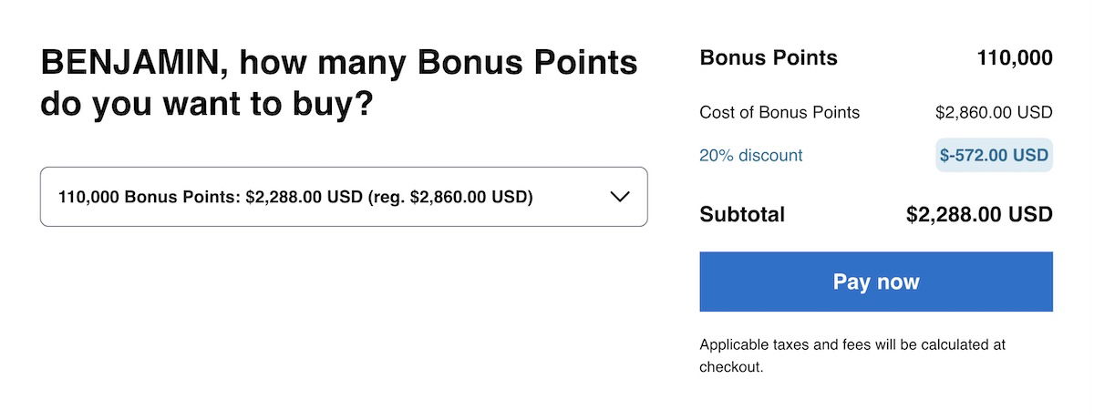 Through Saturday, December 20, 2025, World of Hyatt is offering a 20% discount on purchased points. You can unlock this offer as long as you purchase at least 5,000 points in one transaction.