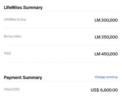 Ordinarily you can buy avianca lifemiles for 3.3 cents each, before any discounts or bonuses. That means that if you purchased 200,000 lifemiles (pre-bonus) with a 125% bonus, you’d receive a total of 450,000 lifemiles for $6,600, which is a cost of 1.47 cents per mile.