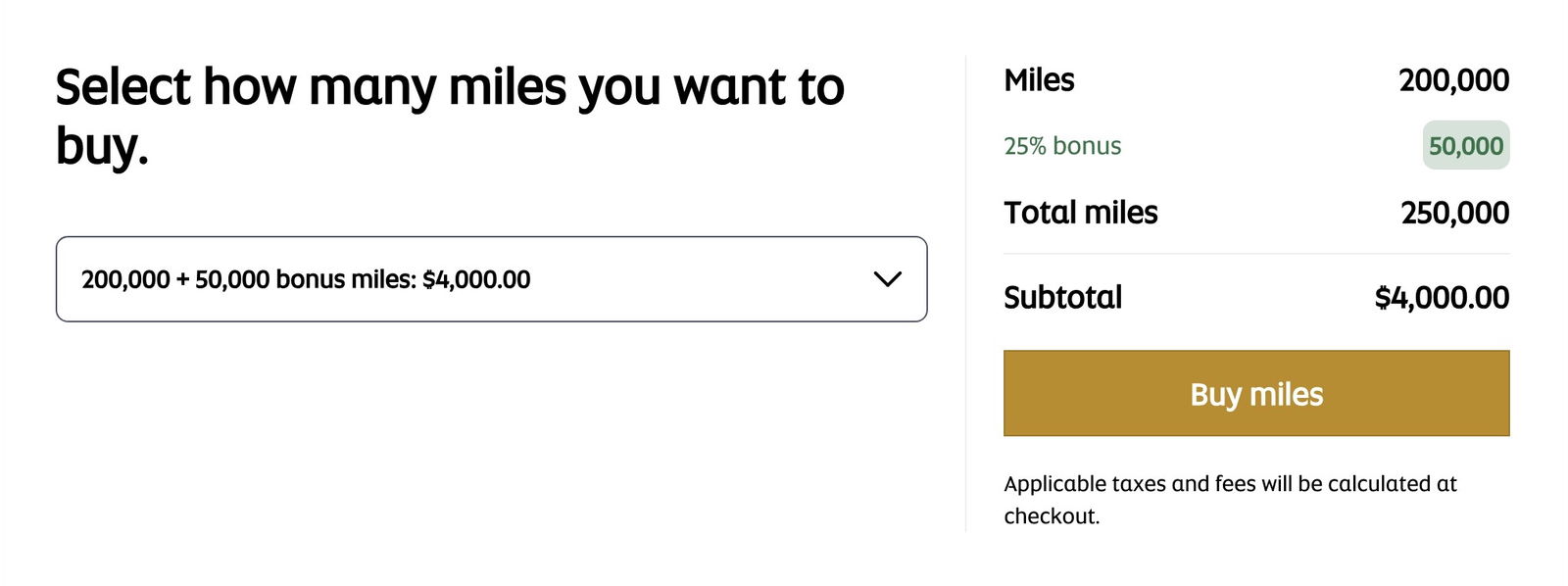 - Buy 50,000-200,000 miles, receive a 25% bonus
