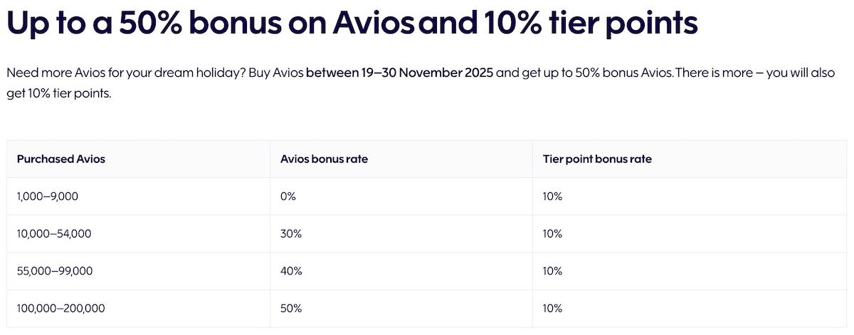 - Buy 100,000-200,000 Avios, receive a 50% bonus