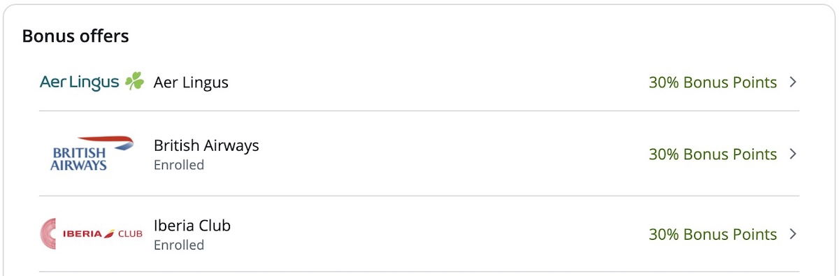 Not only is there a 30% transfer bonus to British Airways Club, but the same bonus is available to Aer Lingus AerClub and Iberia Club. That’s nice, though keep in mind that you can freely transfer Avios between the various “flavors.”