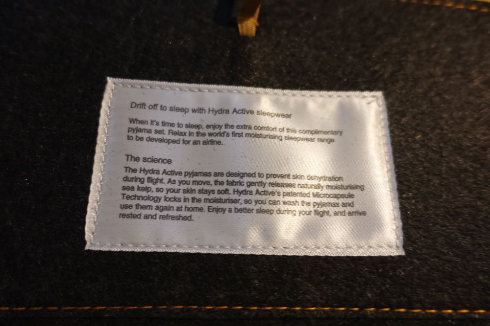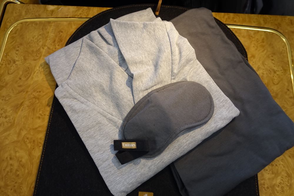 Emirates has been touting their new pajamas, which are supposedly moisturizing. They were certainly stylish, and I think the grey tones are an improvement over the old beige pajamas.