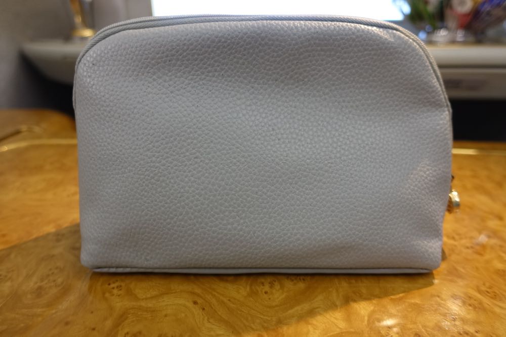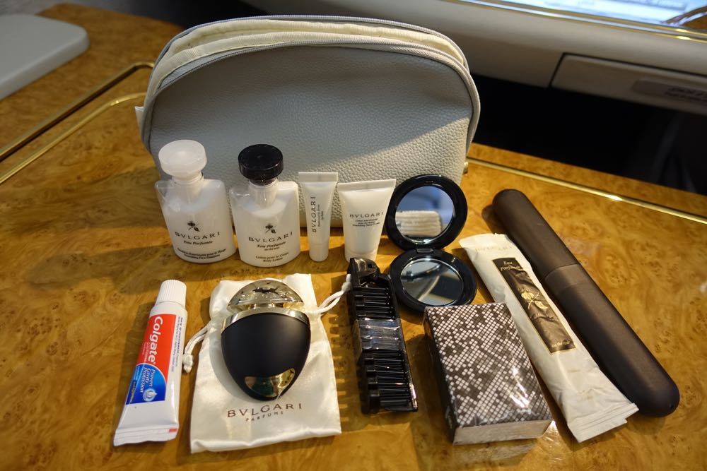 The amenity kits are also new, though still made and provisioned by Bulgari. The ladies’ kit is a pebbled cream leather, and featured both face and body lotion in addition to the more common hand cream and lip balm.