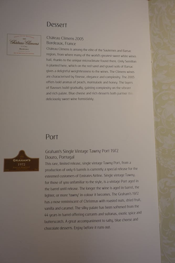 ~ Which wines did you try on the flight? Any recommendations. I have flown in EK F a couple of times several years ago (same route when they used a B77L) and remember having some '89 French wine (don't remember much other than it had Chateau in its name :-) which is the best wine I have ever had. I'm not much of a wine-connoisseur and don't want to try whole bunch of them to find out which ones are good.