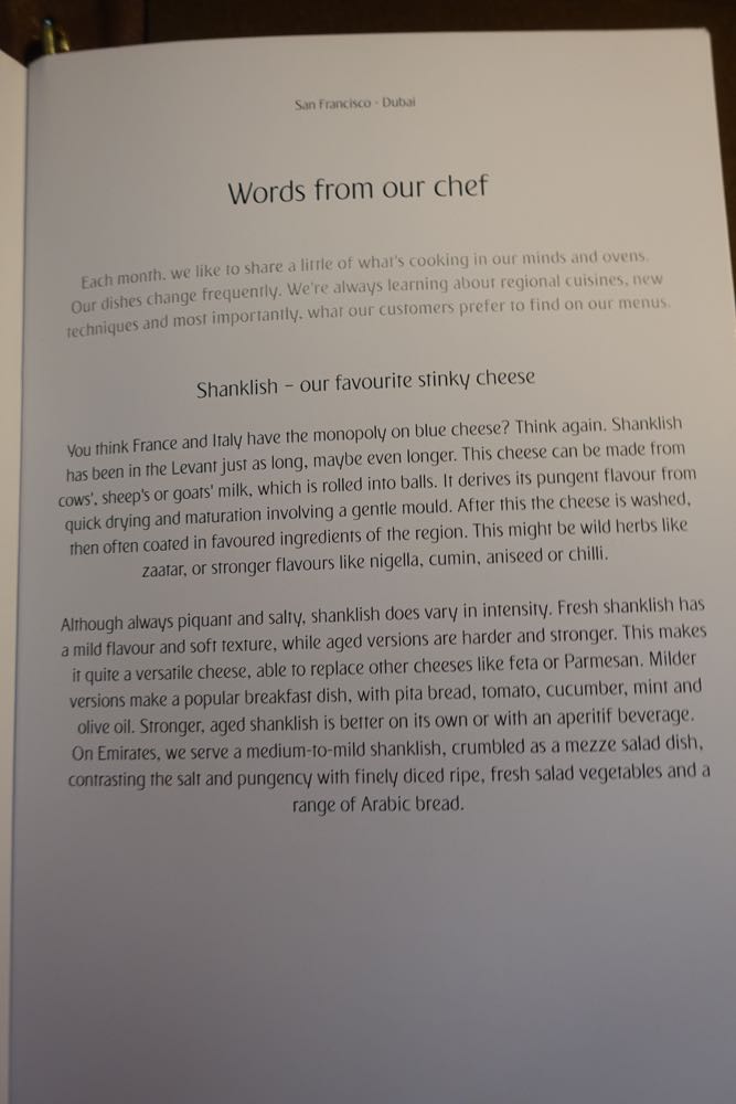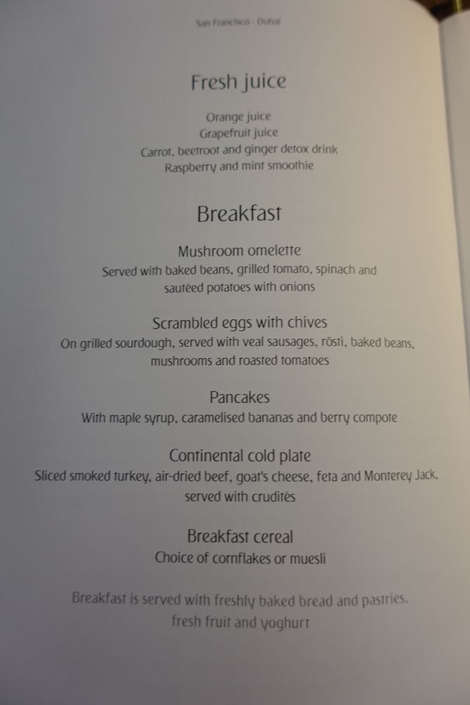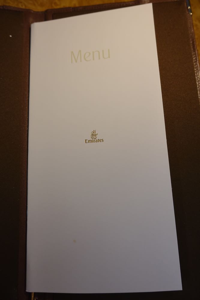The menus were presented, which as usual for Emirates were extensive (sorry about the pictures, I didn’t realize these were so blurry until we were off the plane):