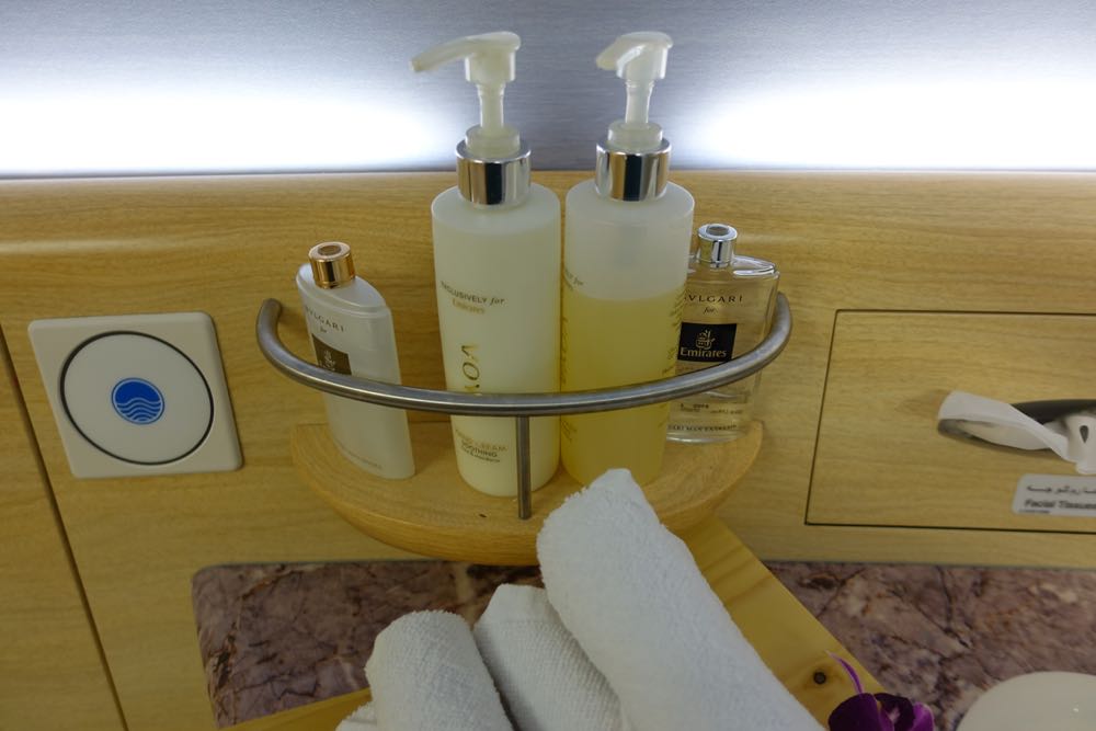 My husband reluctantly took a shower as well (he’d been properly unimpressed with Etihad’s A380 shower, so didn’t feel the shower was worth the hype). He changed his mind once he realized the floors in the Emirates shower suite are heated. 😉