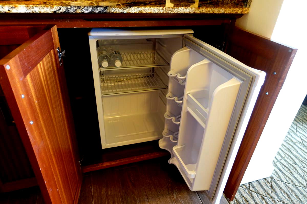 The bar area had a tea and coffee station, as you’d expect, but the cabinet also had a mini-fridge (empty except for two complimentary bottles of water), and a microwave. A family could easily keep a few snacks in their room — we stashed fruit and yogurt in here for early mornings. I thought both were a very nice touch, given how expensive food in Hawaii can be.