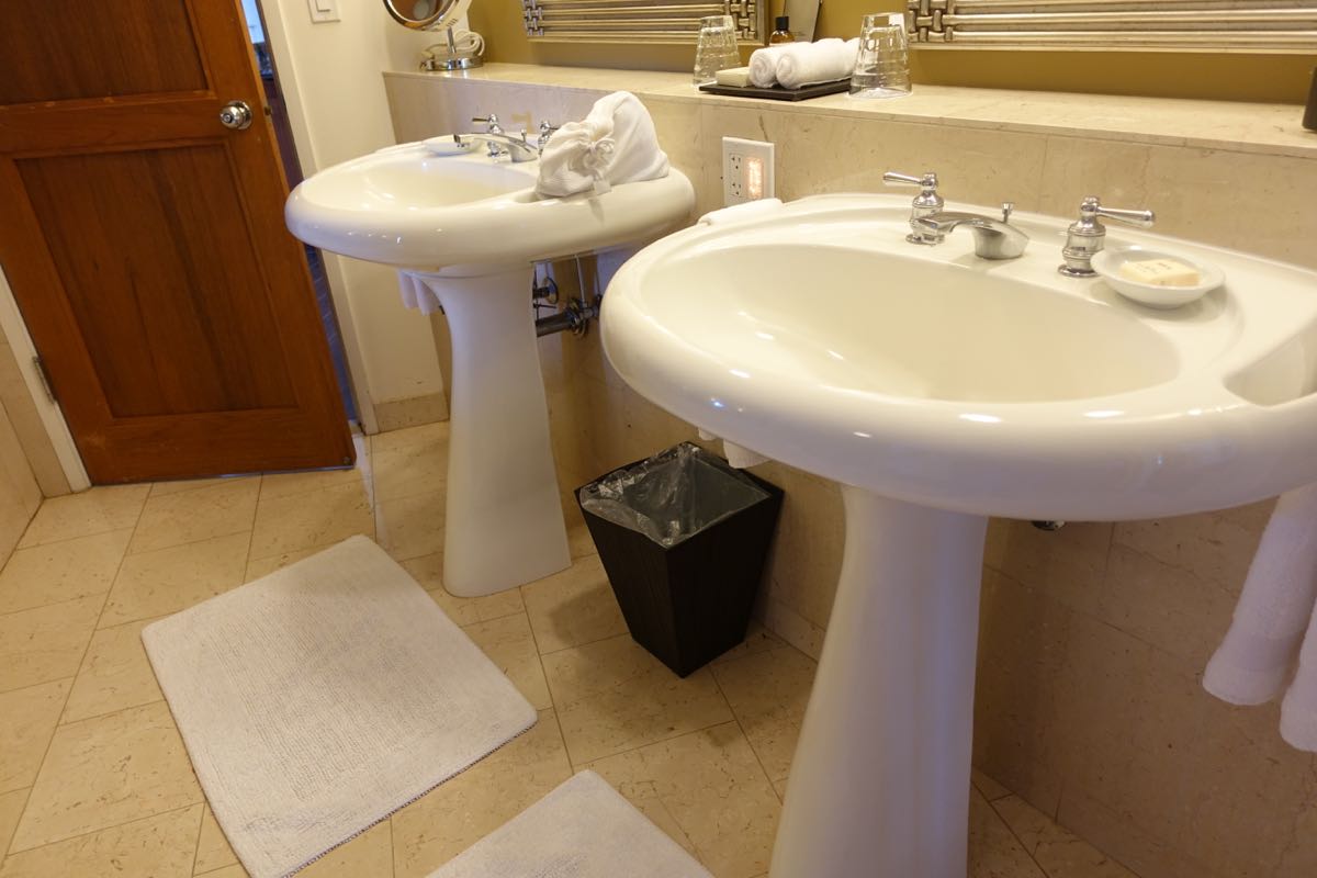 The bathroom itself was spacious, with a soaking tub, walk-in shower, dual pedestal sinks, and a separate toilet closet.