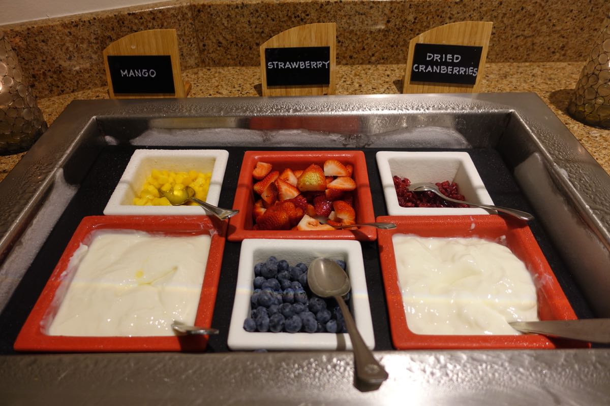 The food was tasty, though simple, with a solid mix of fresh fruits, meats, cheeses, yogurts, and pastries, along with Asian-inspired options like miso soup and congee. I have limited pictures, unfortunately, because it was so crowded.