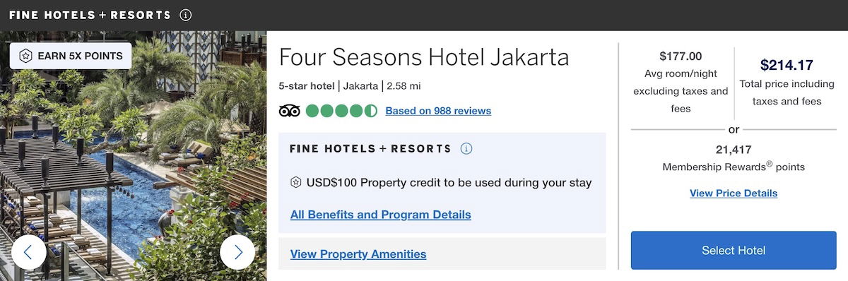 Or you could book the Four Seasons Jakarta for $214.17 per night, covered by the credit, with even quite some residual value.