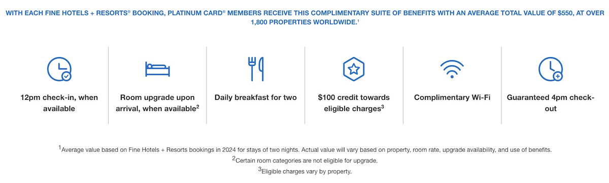 For those not familiar with Amex Fine Hotels + Resorts® or The Hotel Collection, these are programs that those with the Amex Platinum Card and Amex Business Platinum Card can take advantage of. The credits specifically have to be used with one of these two programs.