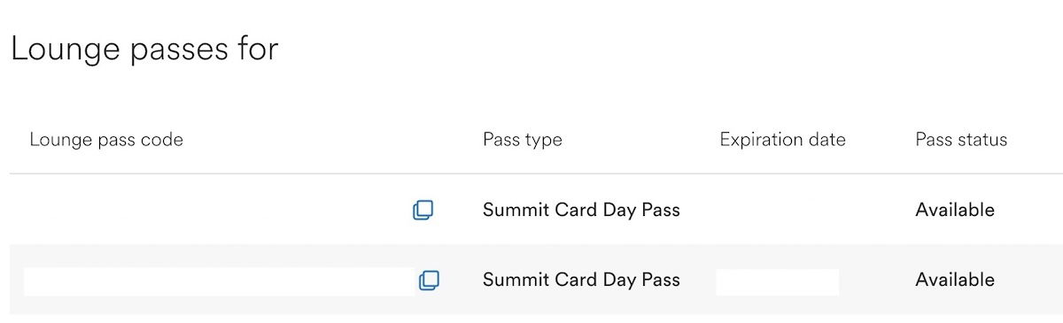 On that page you’ll see all the rewards that are in your account (including things like the 25K-point and 100K-point Global Companion Awards), and if you scroll down, you should see a section that lists all your active lounge day passes.