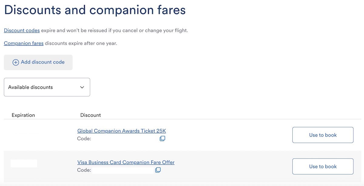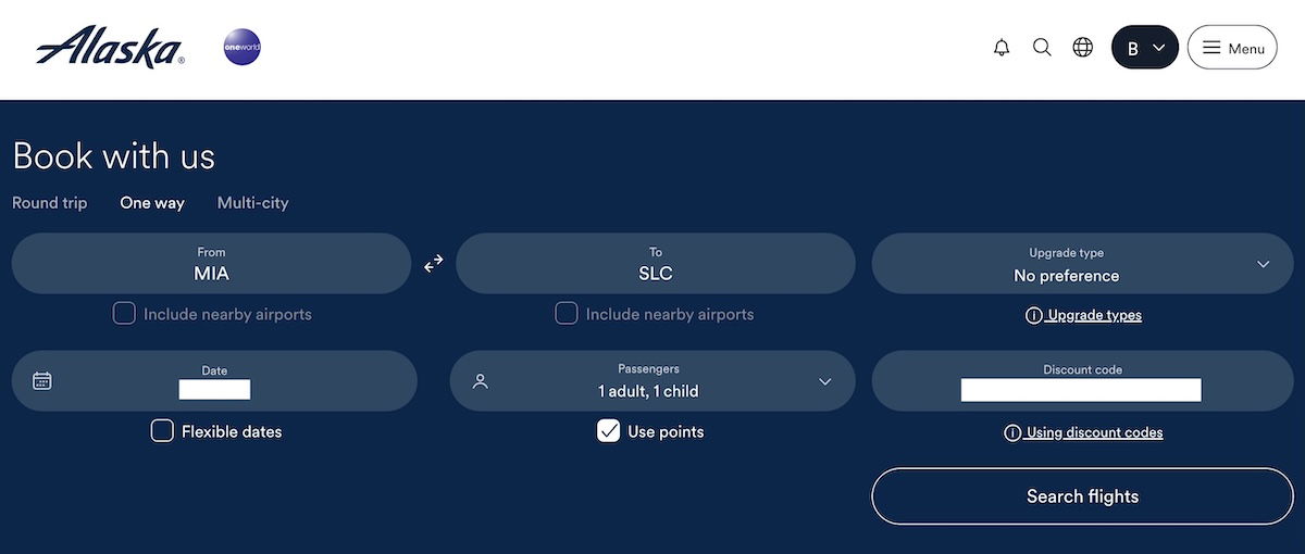 First I went to the “Discounts and companion fares” section of my Atmos Rewards account, where I found the code for the “Global Companion Awards Ticket 25K.” You can either copy and paste the code, or you can click “Use to book,” and that will then take you to Alaska’s booking homepage.