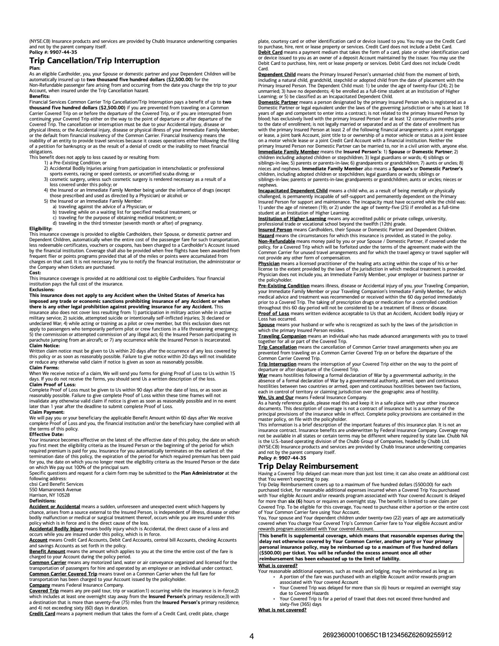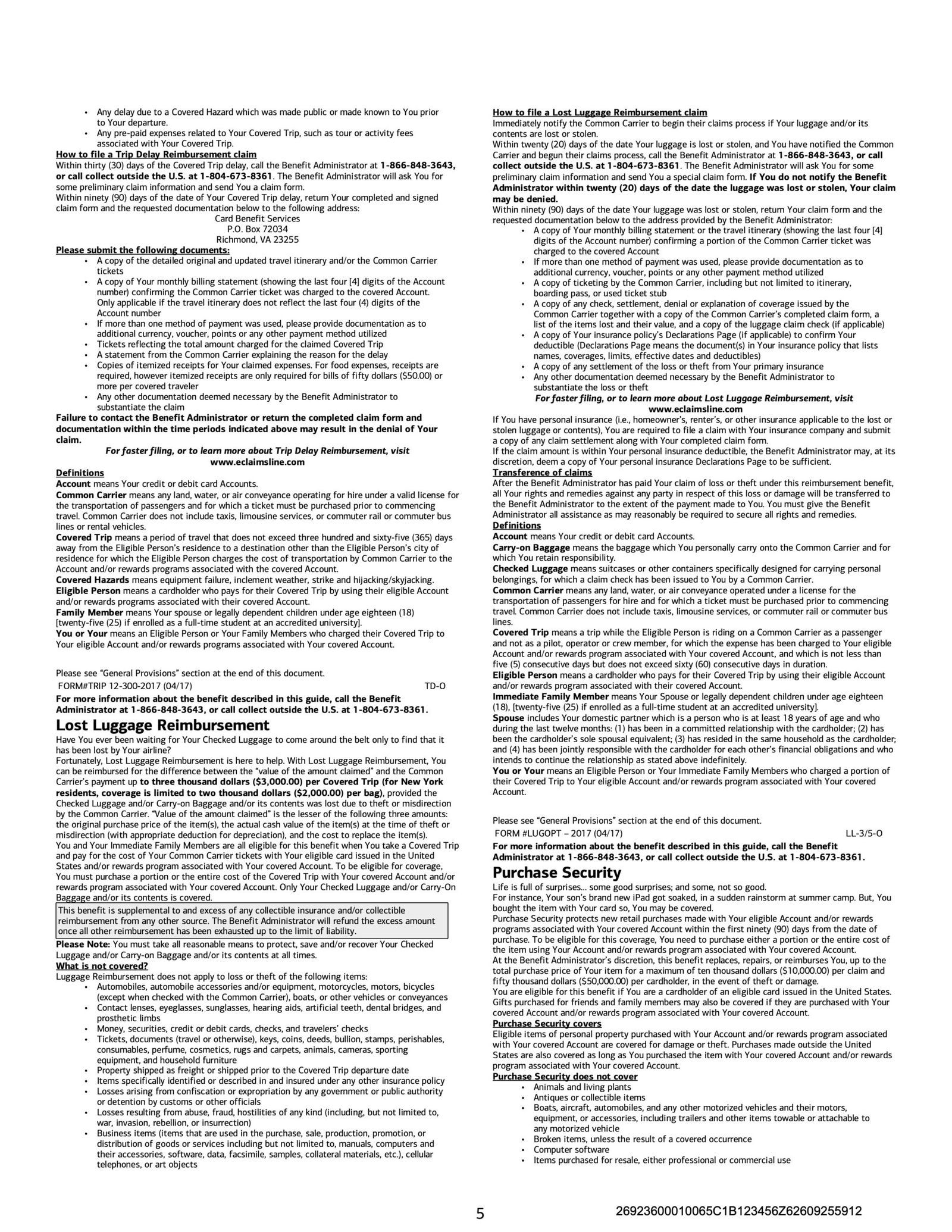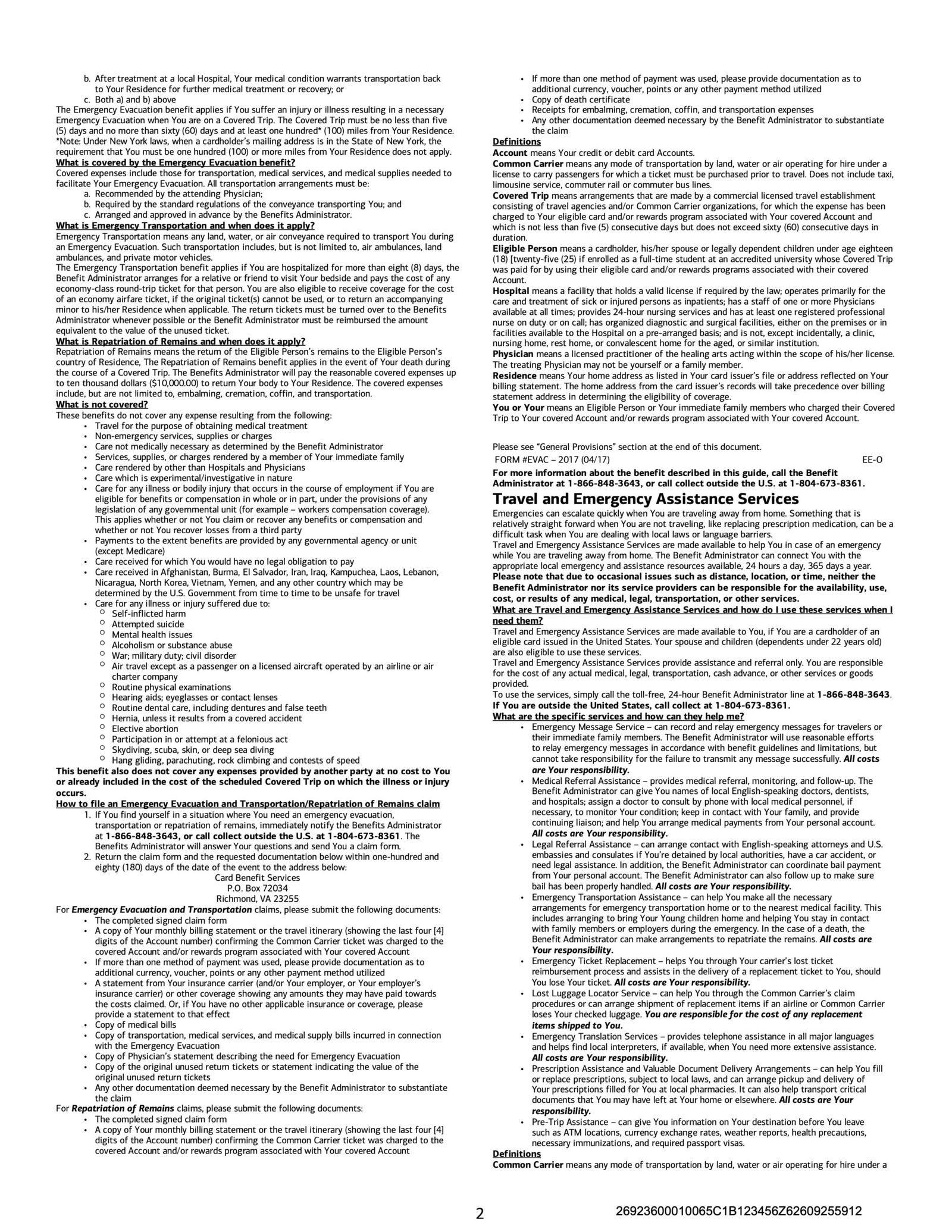 The card offers the following coverage (in all cases, consult the guide to benefits, because there are important terms):