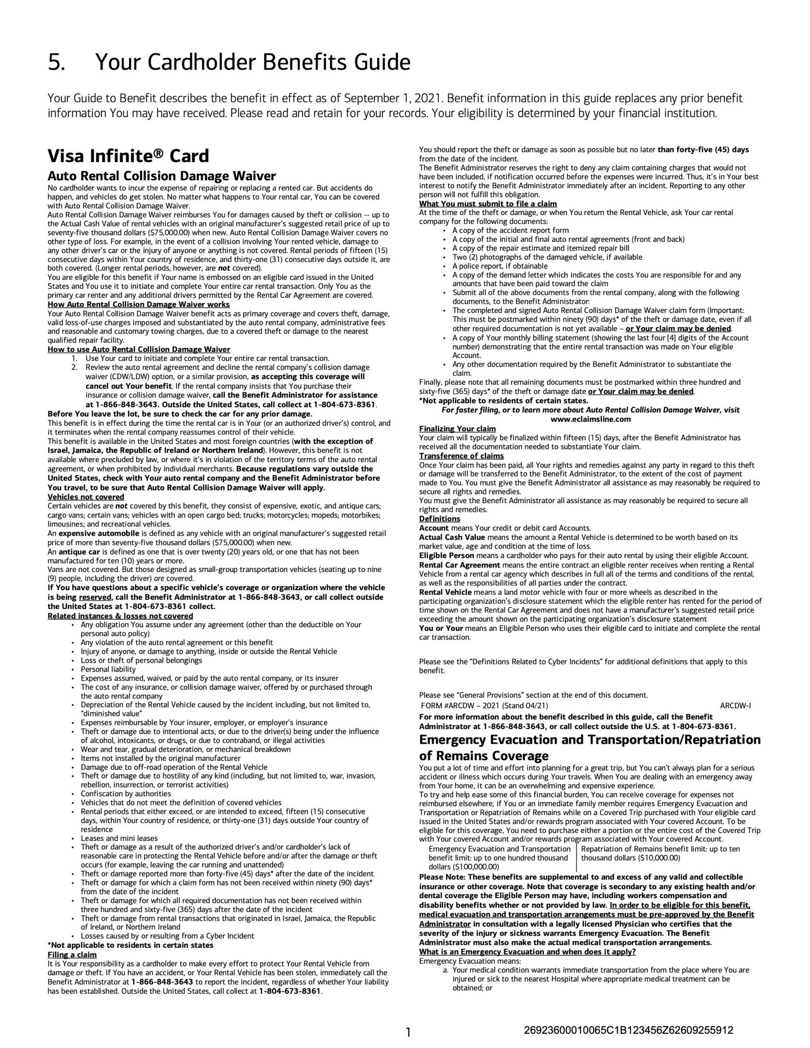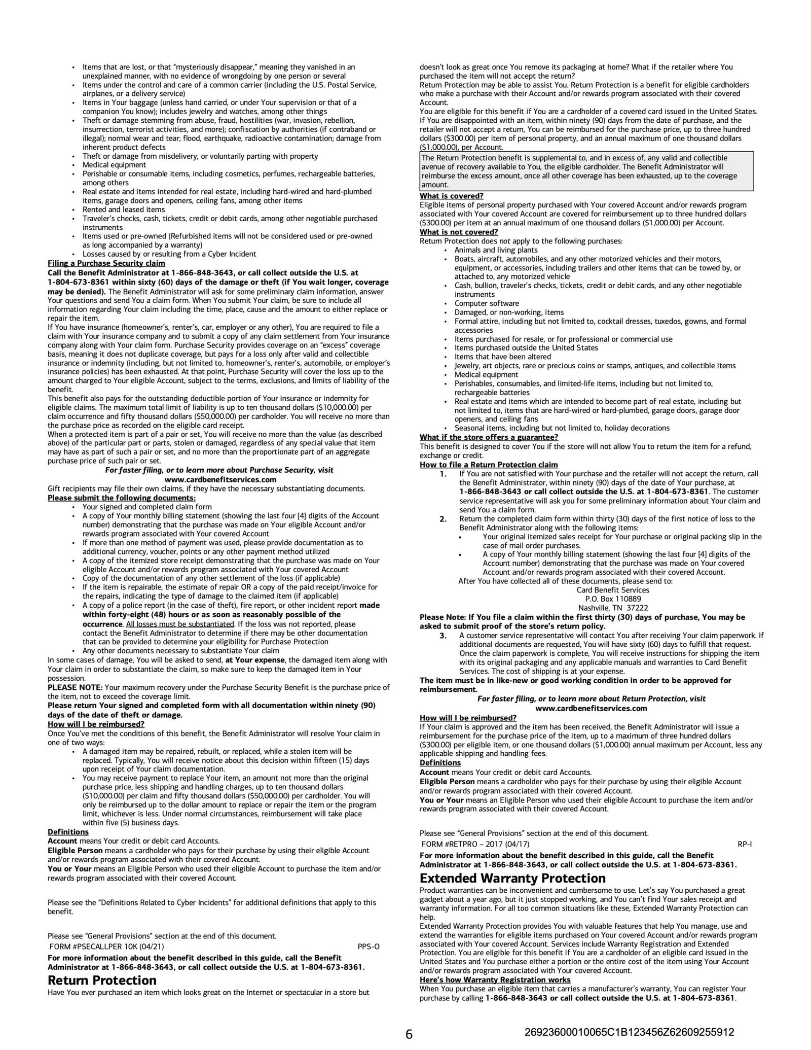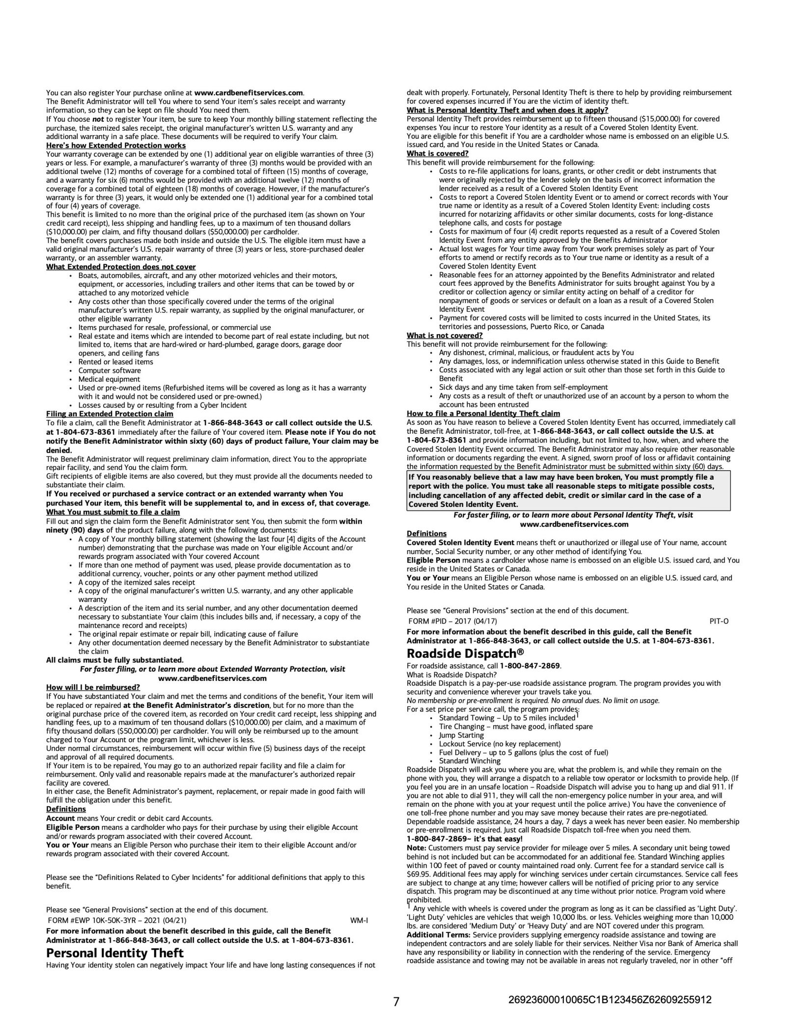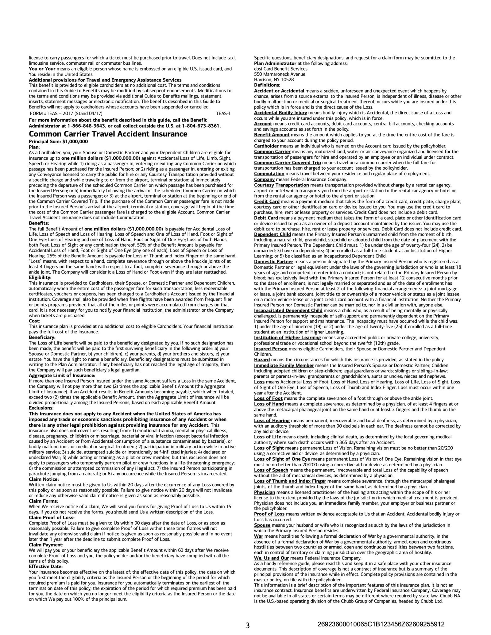 The card offers the following coverage (in all cases, consult the guide to benefits, because there are important terms):