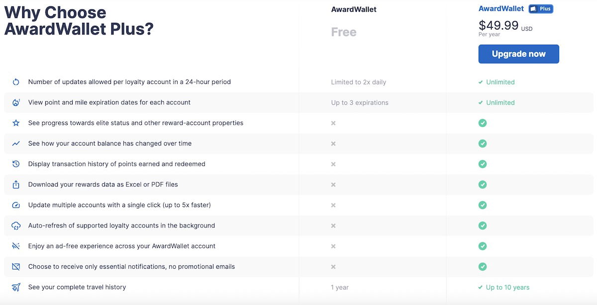I do think AwardWallet Plus is worth it if you have a lot of balances to keep track of. Hopefully you can just find free upgrade codes, but even if you can’t, around $50 per year isn’t much to spend for the peace of mind of easily tracking all your points balances.