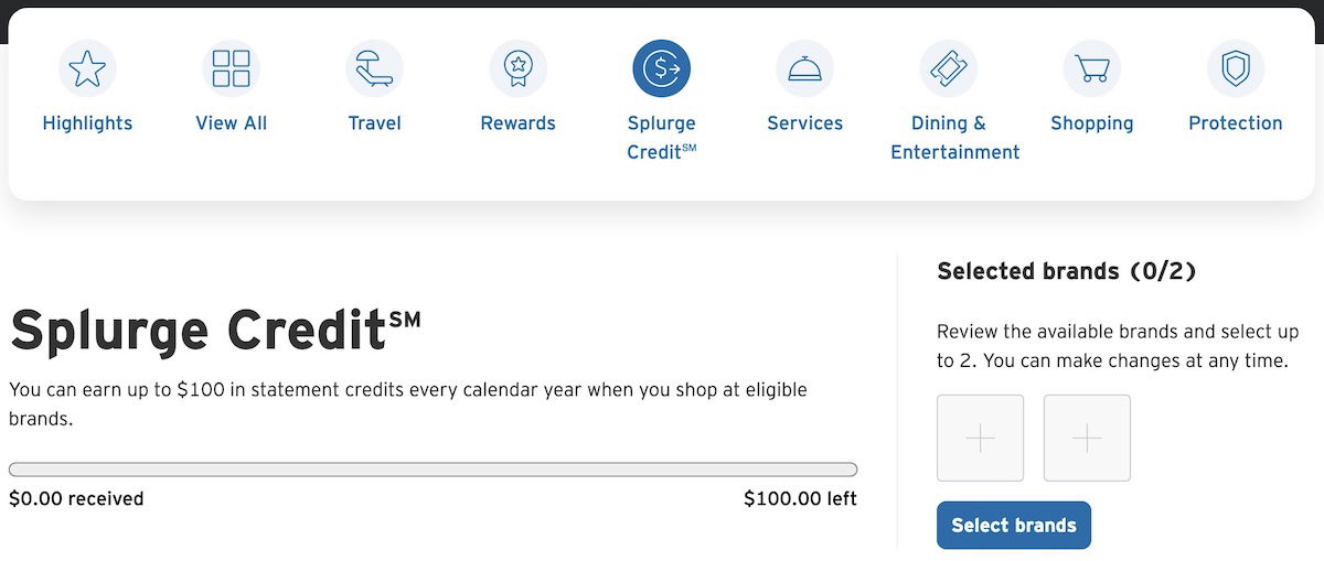 When you follow that link, you’ll see the option to select brands, and you’ll also see how much of your Splurge Credit you’ve used so far.