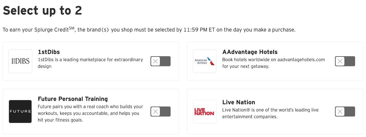 - When you select the merchants you want to choose the Splurge Credit for, that selection applies as of 12AM ET on the day the merchant is selected; in other words, this could even apply slightly retroactively, because if you made a purchase at 1AM and only registered at 8AM the same day, that purchase would be eligible