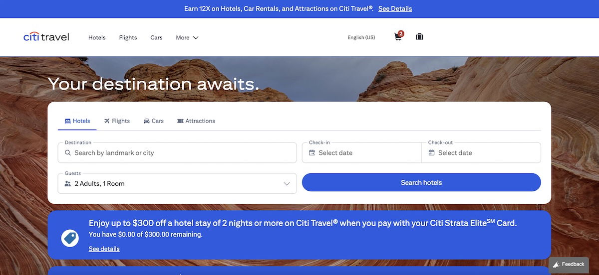 Like most major credit card companies, Citi has its own travel portal, known as Citi Travel. This portal allows you to earn and redeem points for flights, hotels, rental cars, and attractions.