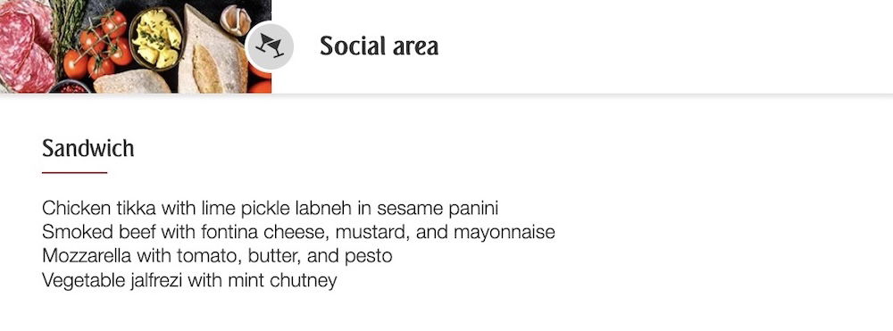 The selection will vary, but just as an example, below is the bar and lounge sandwich selection for current flights.