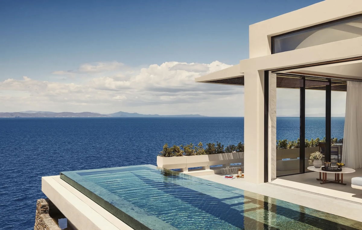 One&Only Kéa Island opened in 2024, and is located on a less-developed island in the Cyclades, a short boat ride from Athens. The resort consists of 63 villas, each with an infinity pool and sea views.