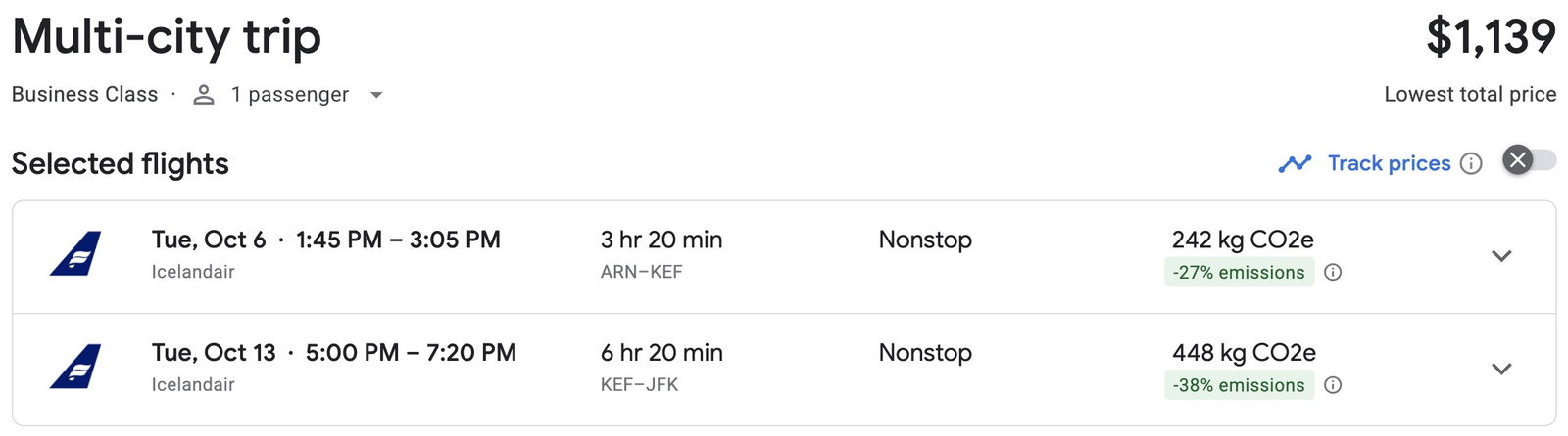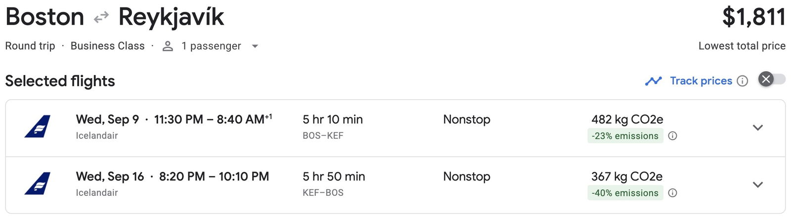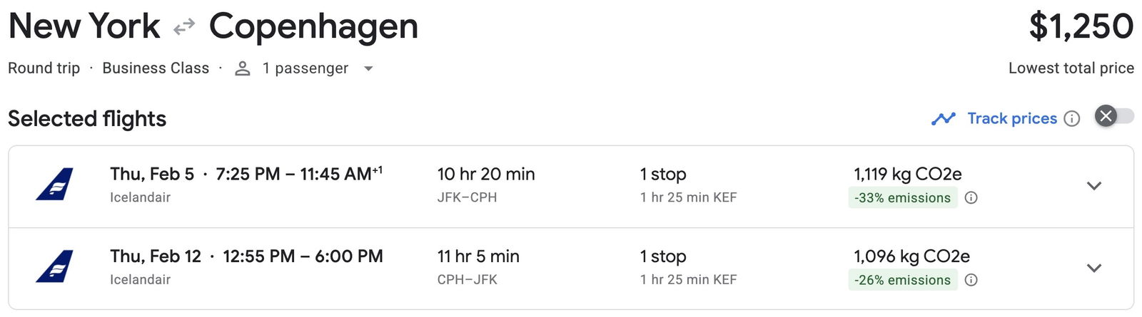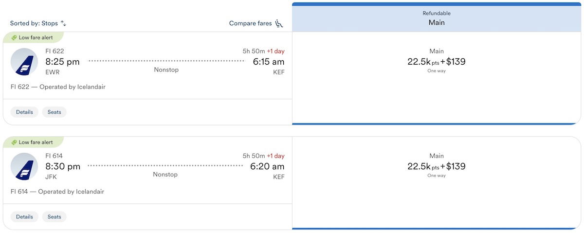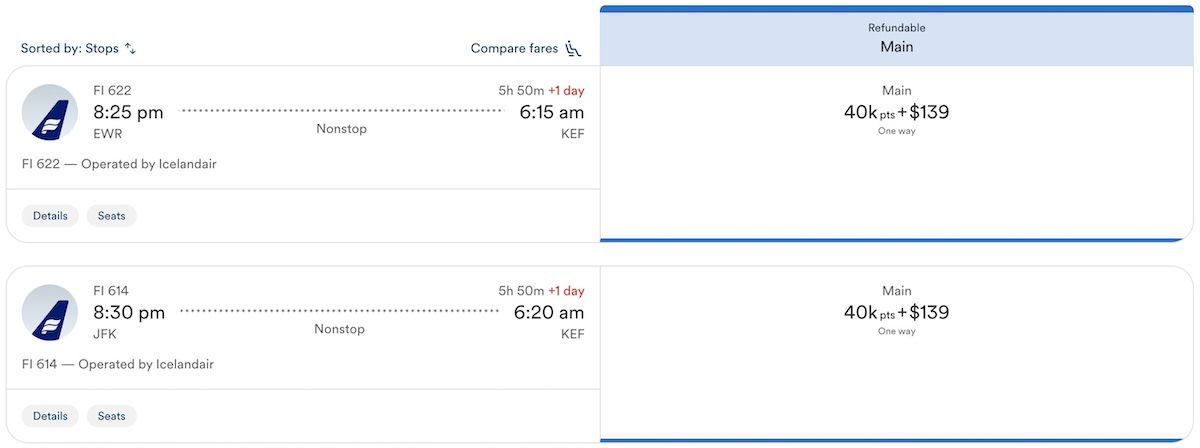 So there are lots of good options for revenue fares on Icelandair, and then those fares can potentially be offset with credit card points.