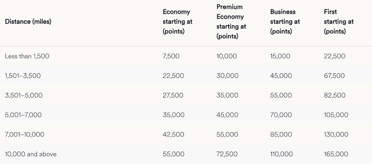 - An itinerary of 1,501-3,500 miles would start at 22,500 points one-way, or 30,000 points in premium economy
