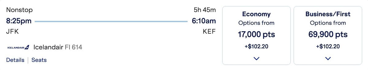 For example, on random dates I pulled up, you can fly from New York to Keflavik for 17,000 points in economy, or 69,900 points in Saga Class.