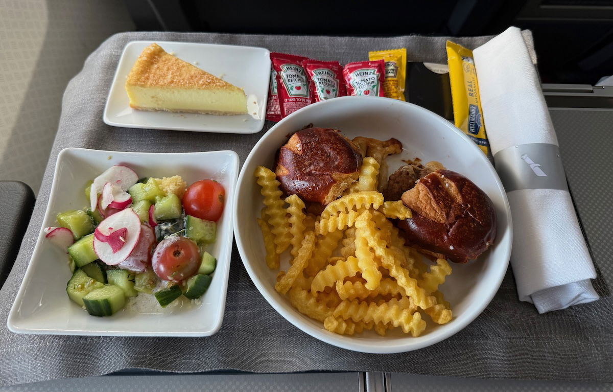 Sometimes airlines like to get creative with the food they serve in premium cabins, and earlier this year, American introduced sliders and fries as an option in domestic first class, only for pre-order. Now, I must admit, I’m not a huge burger person in the first place, but it seems that serving good sliders and fries on a plane would be especially challenging, given how they have to be reheated.