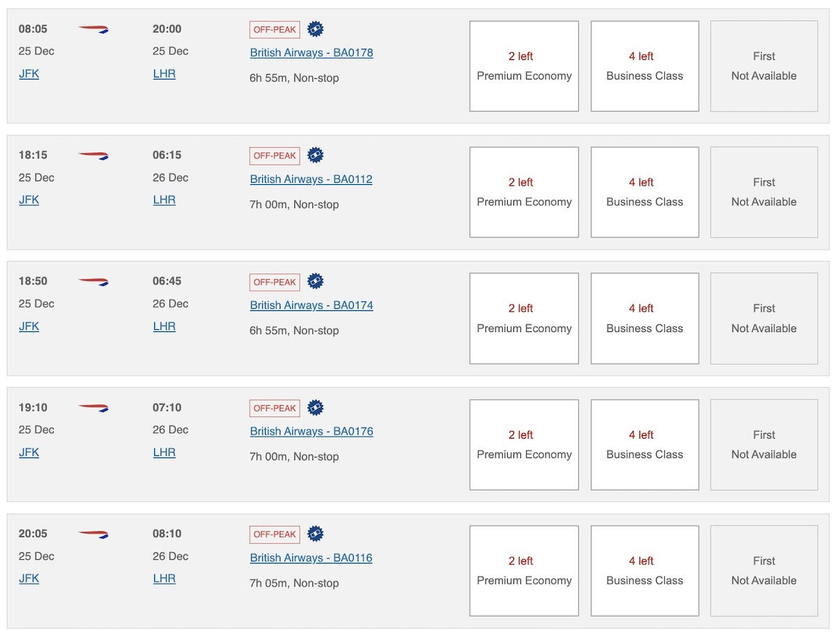 It’s worth mentioning that British Airways will in many cases make more award seats available (especially closer to departure), as the above just represents the absolute minimum number of award seats that you’ll see.