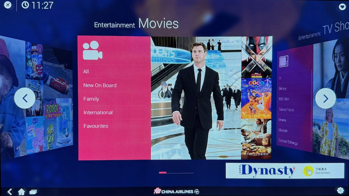 China Airlines’ A350 business class entertainment setup is sufficient, but nothing exciting. There’s a decent selection of movies and TV shows, so it shouldn’t be too hard to find something to watch. However, don’t expect anything like the systems you’ll find on Cathay Pacific or Emirates, for example.