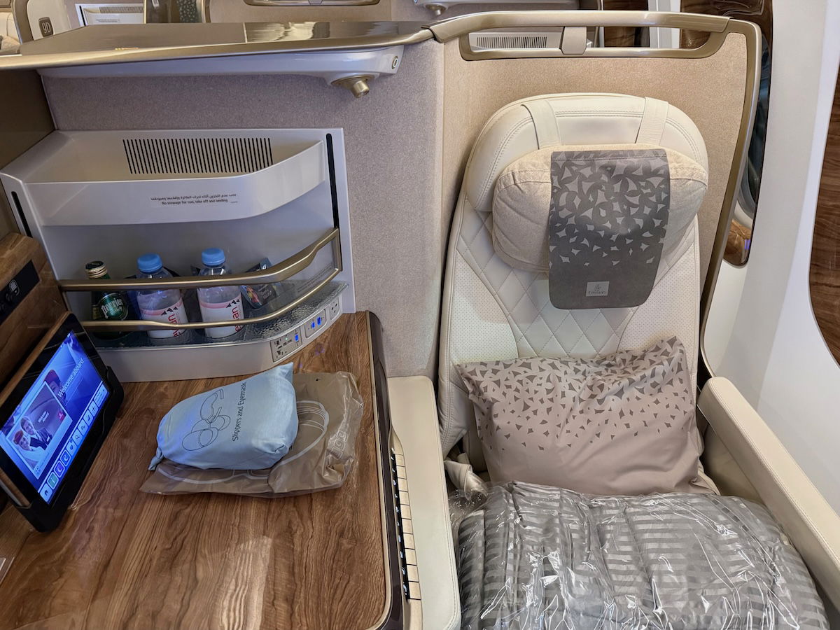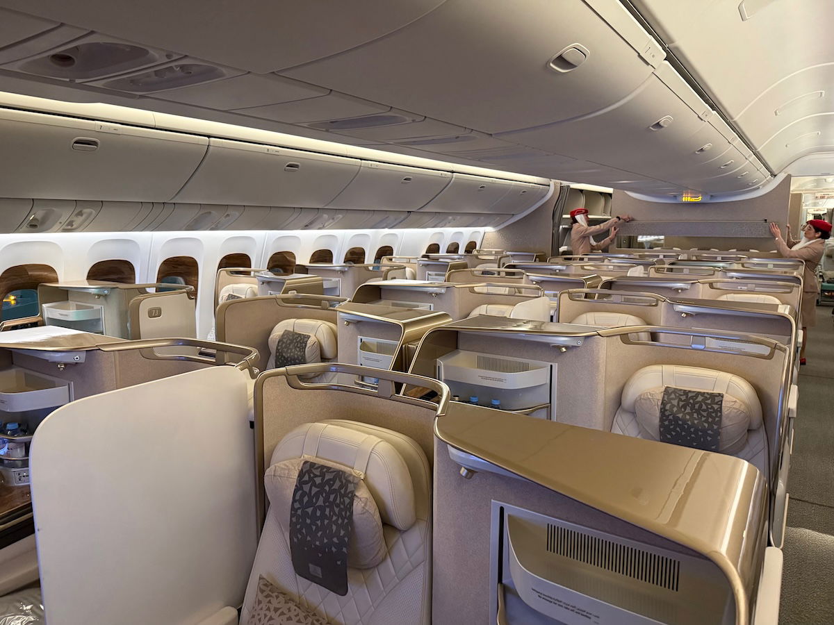Emirates’ old 777 business class has to be one of the most underwhelming business class products out there, as it’s in a 2-3-2 configuration, with angled seats. So to step onboard a 777 with fresh business class seats was awesome.
