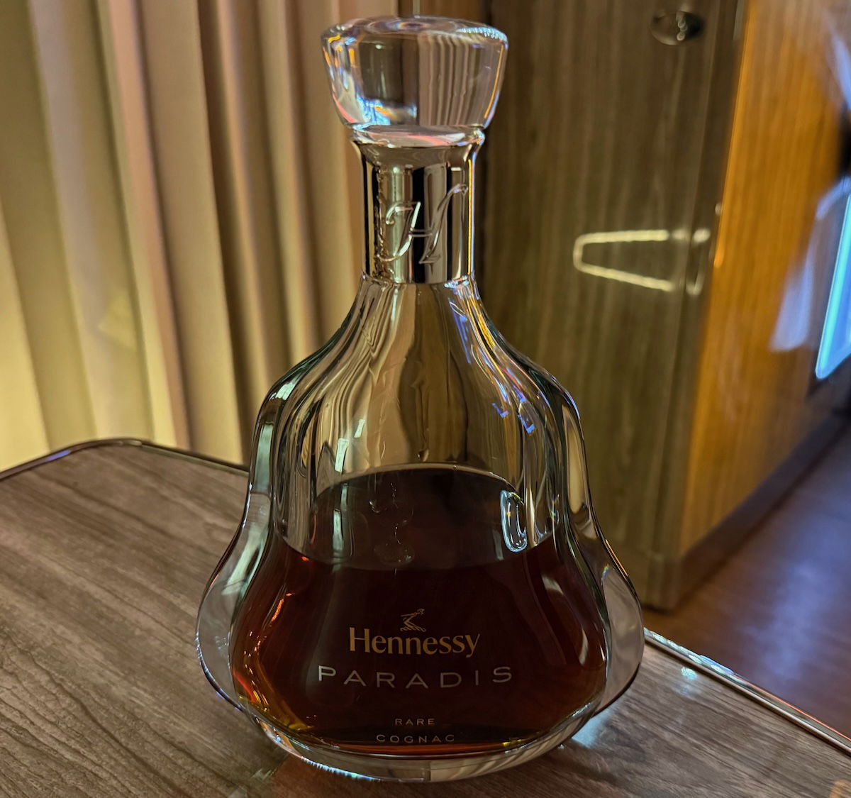 Now, as longtime OMAAT readers from over a decade ago may remember, my dad absolutely loved the Hennessy Paradis served in Emirates first class, so of course we had to wrap up the evening with that. We headed back to the bar, and the purser brought back a sealed bottle of it, for the bartender to pour.