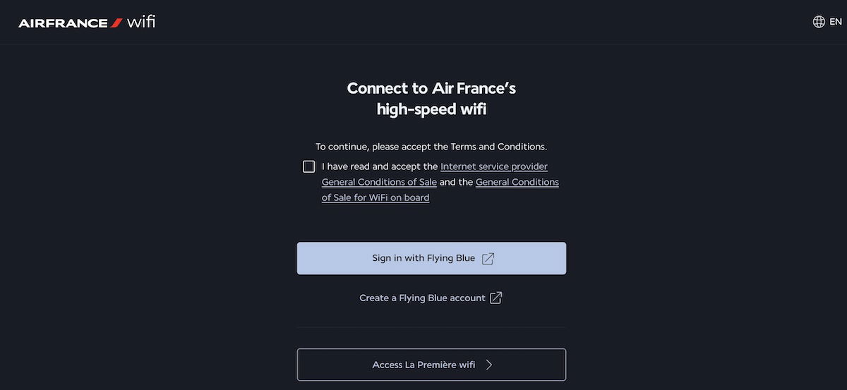 As I opened up the portal, I was given the option to connect to Wi-Fi by signing in with my Flying Blue account information.