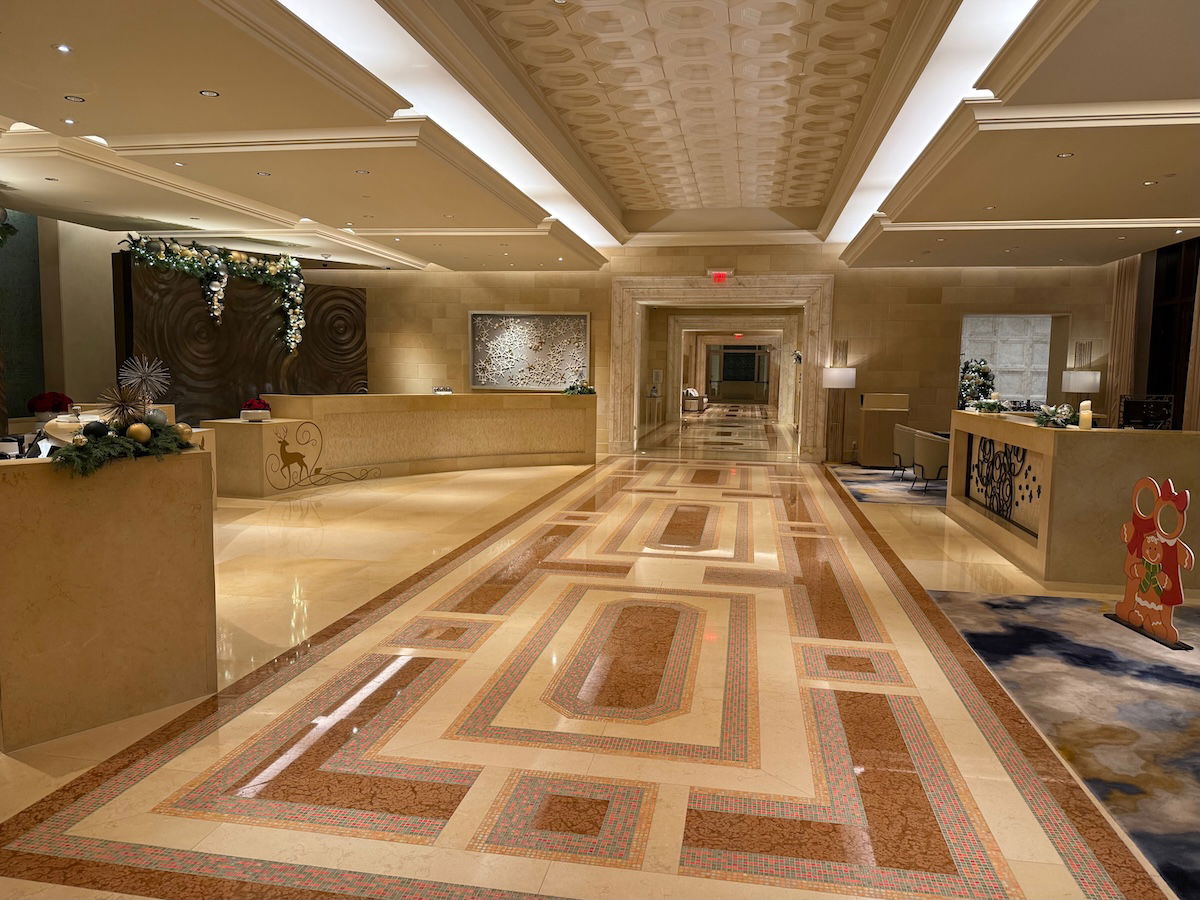 The lobby has a lot of marble and feels grand, but still has a ton of personality, especially with a lot of holiday decorations during our stay.