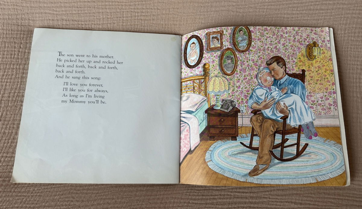 Love You Forever is a real tear jerker! Can be tough to get through reading that book to the kids sometimes. The circle of life is undoubtedly real - sometimes a source of pain but often a source of comfort. Hang in there.