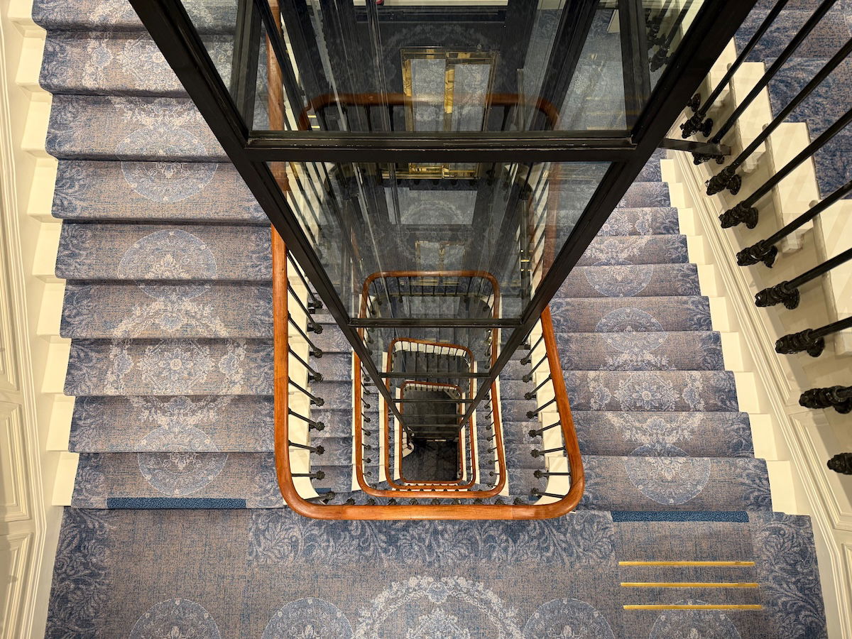 You definitely feel that sense of history in the building, from the old lobby columns, to the elevators, to the beautiful lobby bar. This is what old world Parisian hotels should be like.