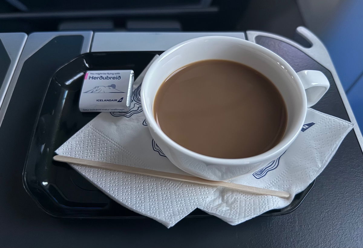 When it comes to drinks, I enjoyed the coffee, and it’s cute how they serve it on a tray, with a chocolate on the side (though the cups could be deeper — I realize this is likely about saving space in the galley in terms of stacking).