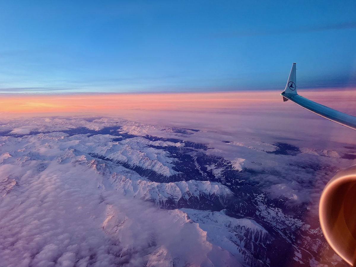 We took off pretty much on time and enjoyed a beautiful sunrise over the Alps.