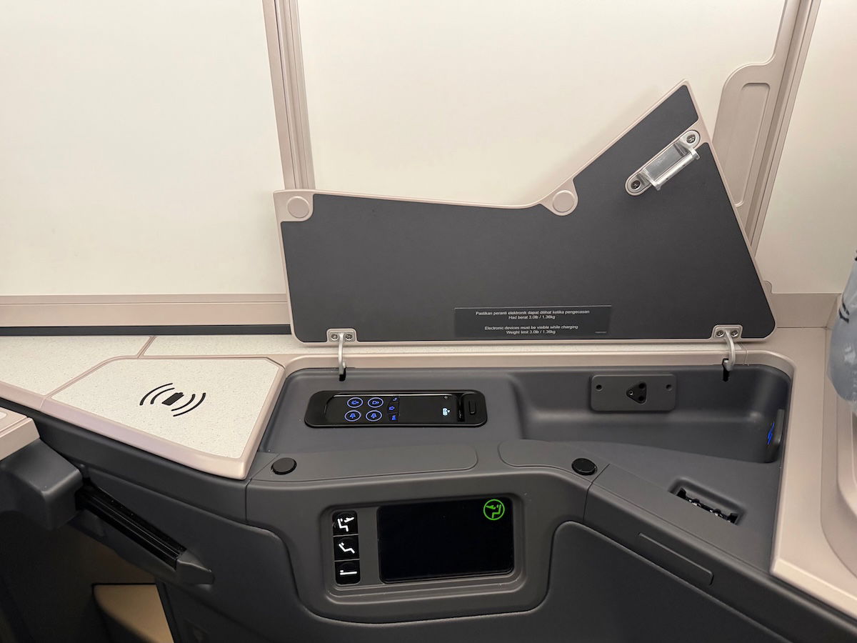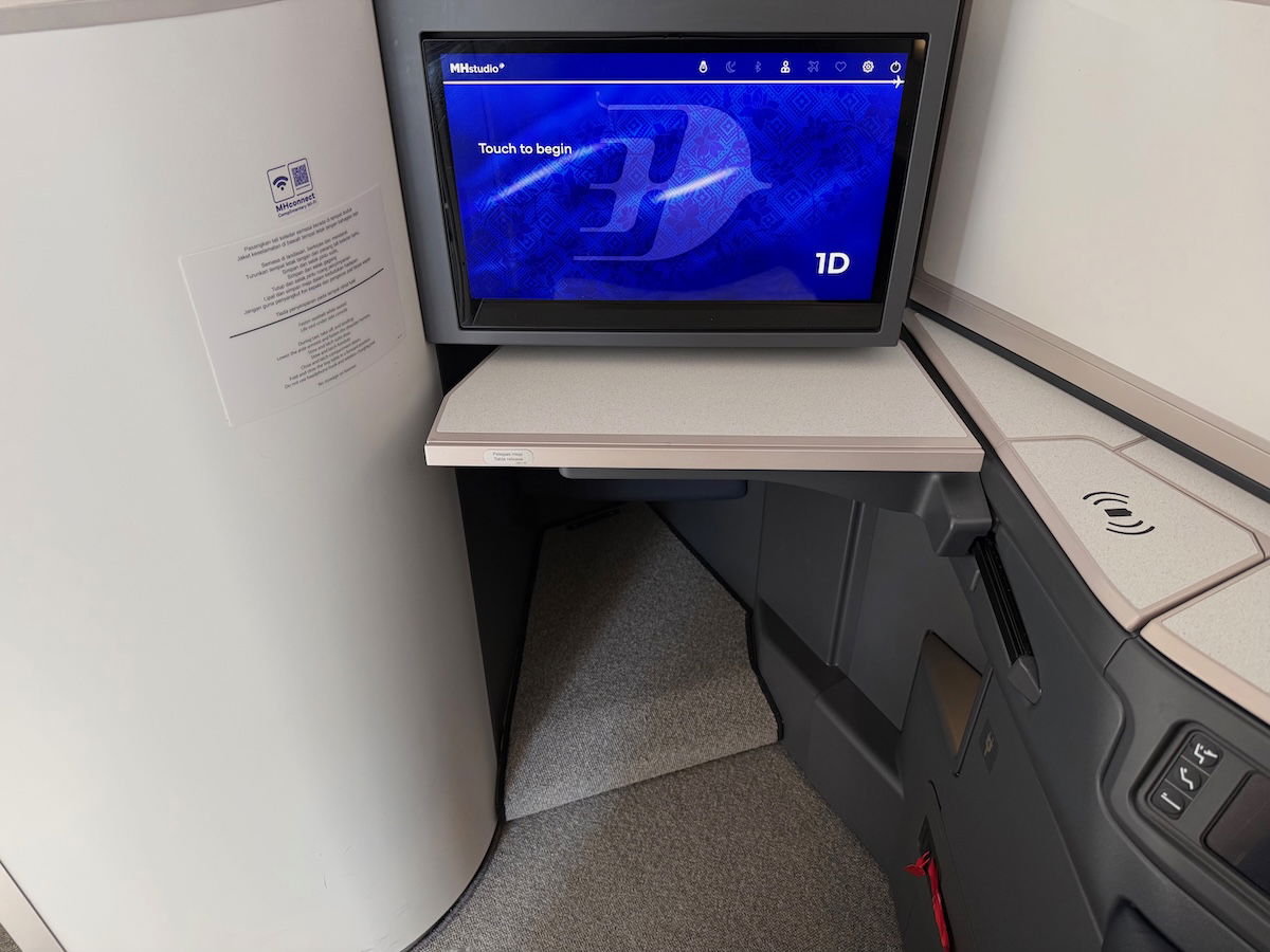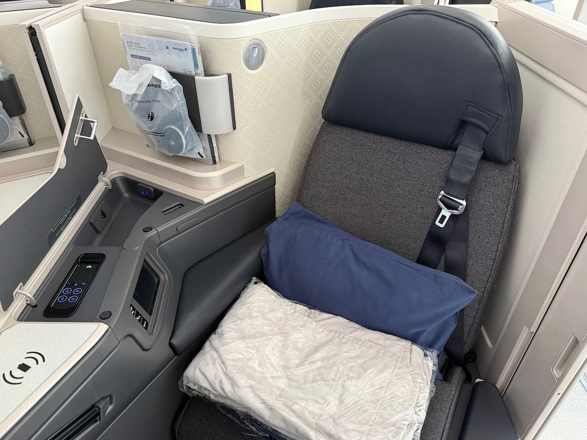 Malaysia Airlines is the global launch customer for the Collins Aerospace Elevation product, which is a new reverse herringbone seat with a door (well, at least in terms of branding — it’s really an update on the Super Diamond seats). Honestly, there’s nothing earth shattering about the hard product, but it feels exactly like what you’d expect.