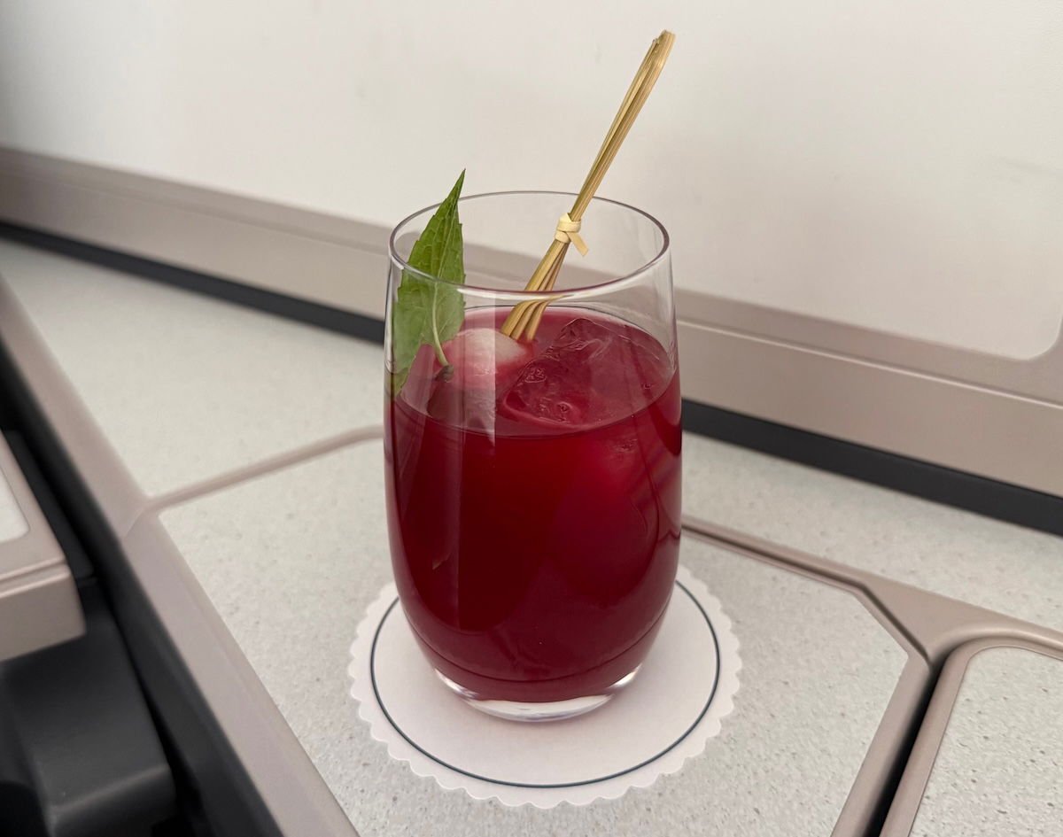 I was mostly impressed by the food & drinks in Malaysia Airlines business class, and it’s clear the airline has put some effort into improving things. For example, pre-departure options included the carrier’s signature drink, a blend of hibiscus, roselle, lychee, and longan.