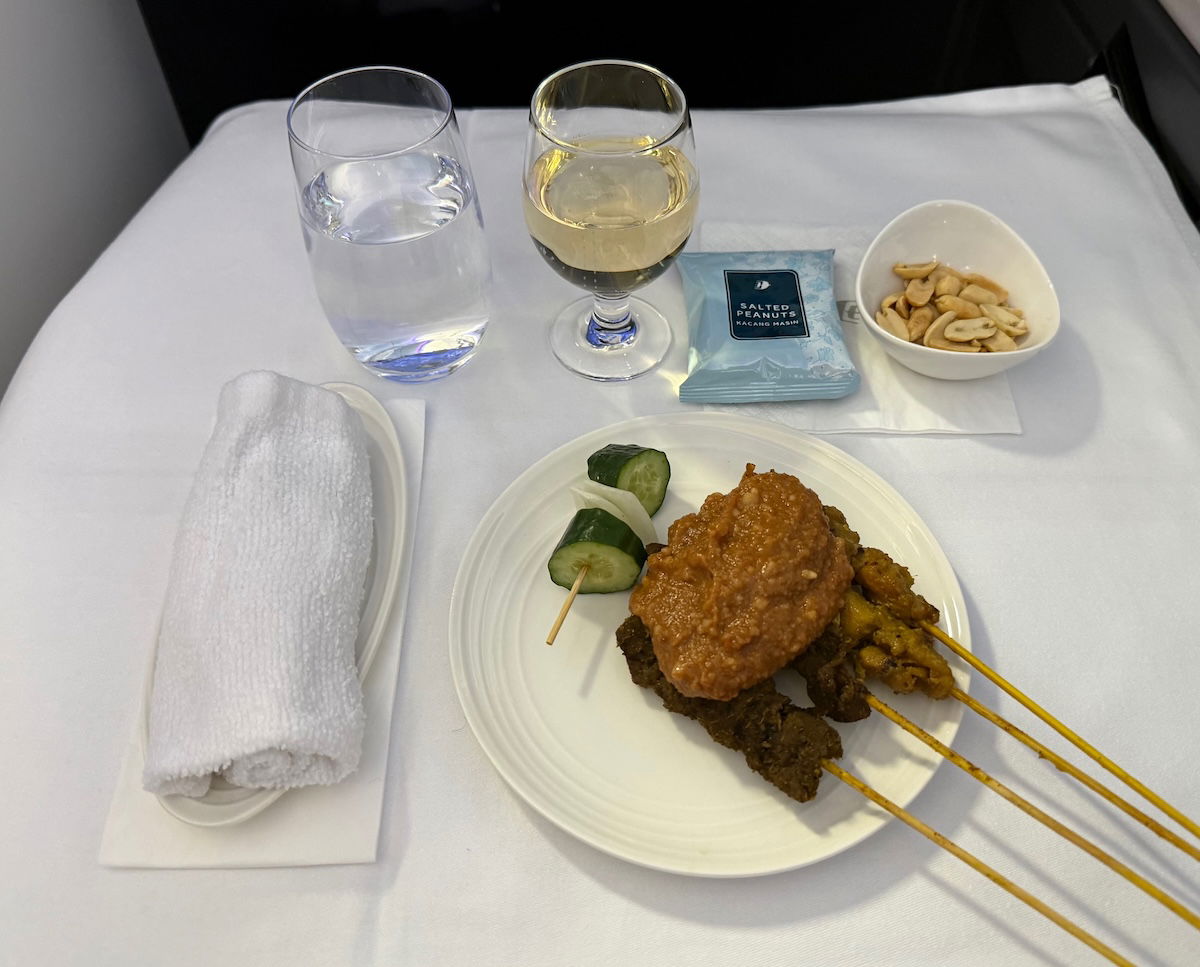 The main meal service then began with the signature satay service, with both beef and chicken skewers, plus salted peanuts.