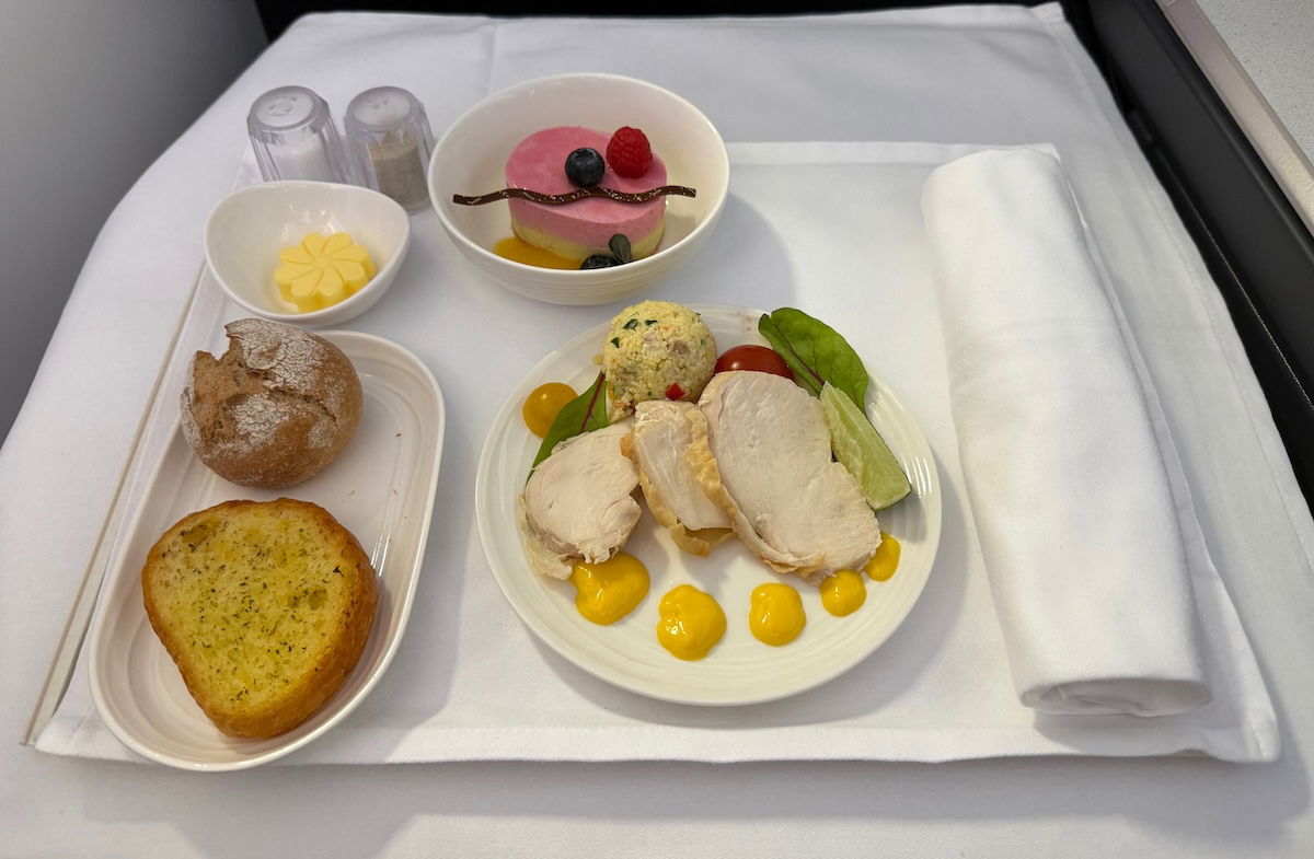That was followed by an appetizer of grilled chicken breast with couscous salad, which quite frankly, struck me as being rather random and neutral on a flight between Japan and Malaysia (two amazing food countries)… but I suppose maybe that was the intent?