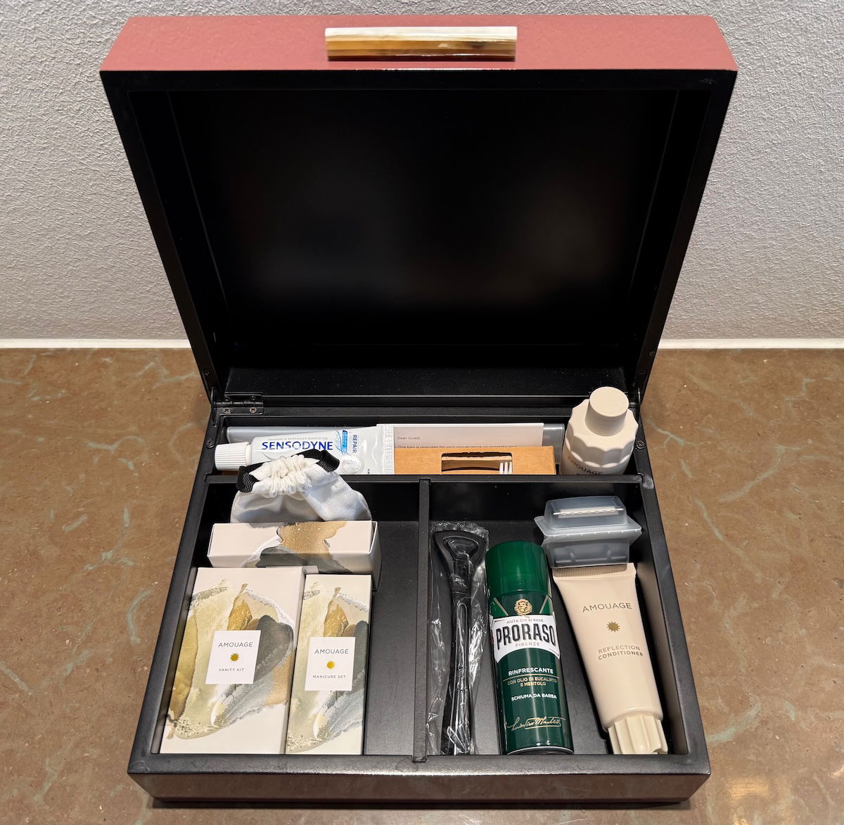 I can’t say how excited I was when I saw toiletries from Oman-based Amouage, which has my favorite cologne in the world. I’ve never seen them used for hotel toiletries before, so I loved that, and it fit nicely into the hotel’s Arab theme.