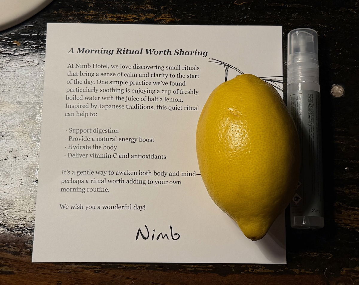 There were just so many little touches that I appreciated, like a lemon being placed next to the bed with turndown service, with the suggestion of boiling water and having some lemon to support digestion, etc.