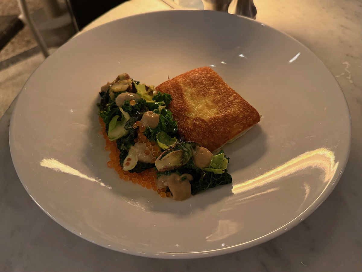 For example, for my main course, I had the halibut en croûte, with fennel, cabbage shoots, trout roe, and champagne sauce, which was incredible.
