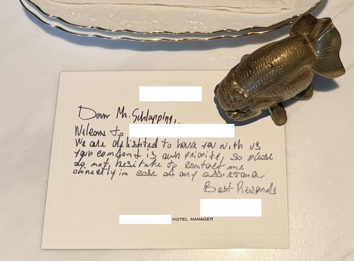 When you check into a luxury hotel, it’s common to get a welcome amenity with some sort of a note that’s addressed to you, typically from someone senior at the hotel. Sometimes the note will be handwritten, and sometimes it’ll be printed. Sometimes it’ll be a scribbled sentence, and sometimes it’ll be quite long.