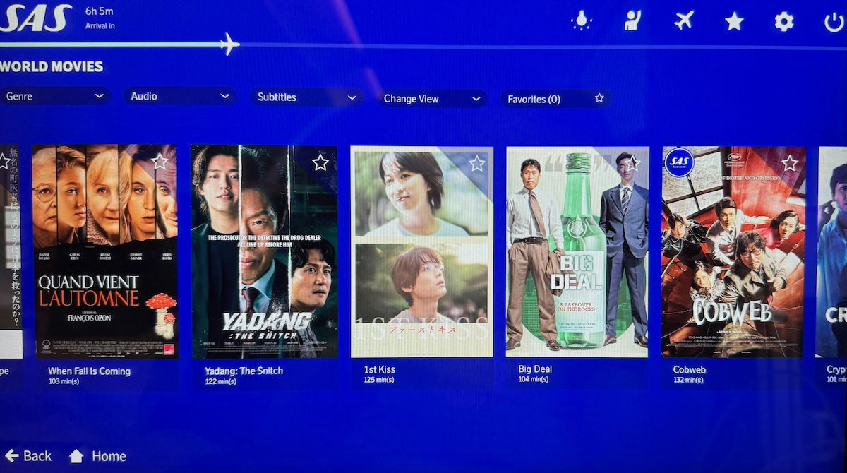 SAS also has 20.5″ seat back entertainment screens on its A321LRs. While there was a little bit of a glare situation, I found the screen to be high definition and the system to be responsive, so I thought this was a good entertainment system setup.