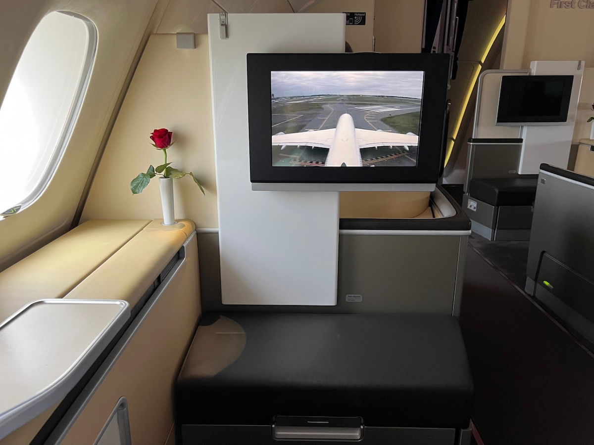 Our personal flights are now always Middle or Far Eastern destinations, in F, starting from the right side of the...